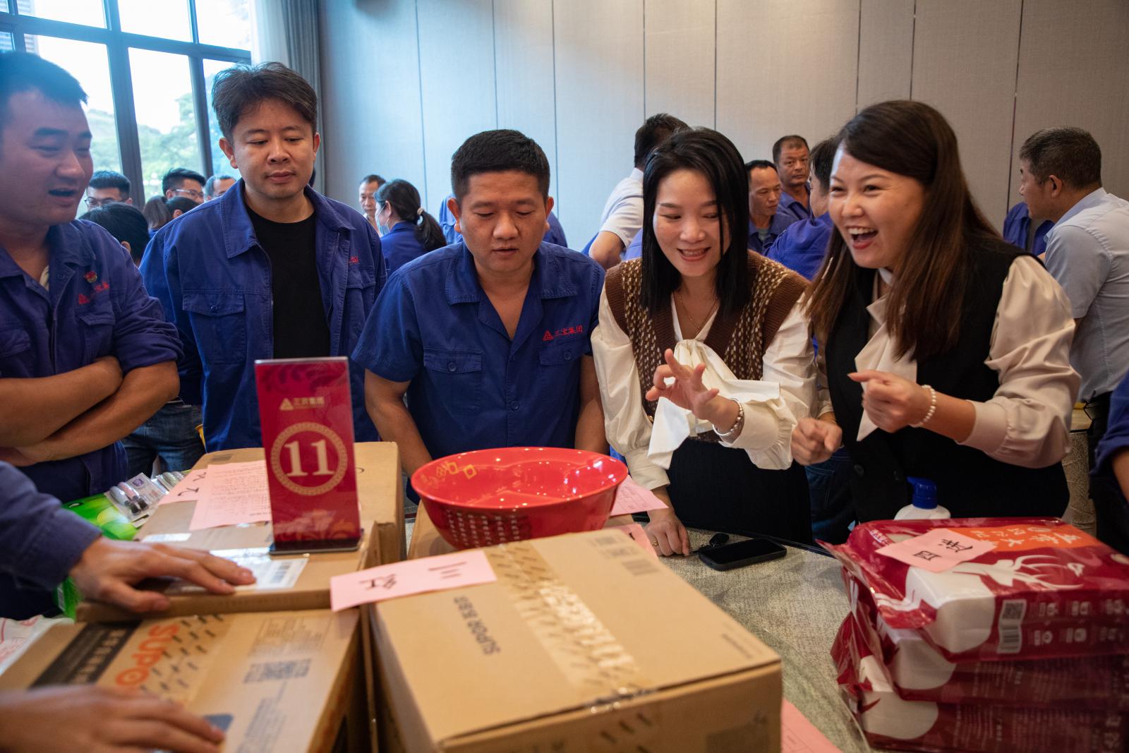 博餅是閩南人幾百年來獨有的中秋傳統(tǒng)活動。隨著骰子投入碗中清脆的聲響,集團博餅活動正式拉開序幕。笑聲和骰子聲交錯在一起,一名名幸運者在歡呼聲中誕生,大家在三寶大家庭中感受到了幸福和快樂。