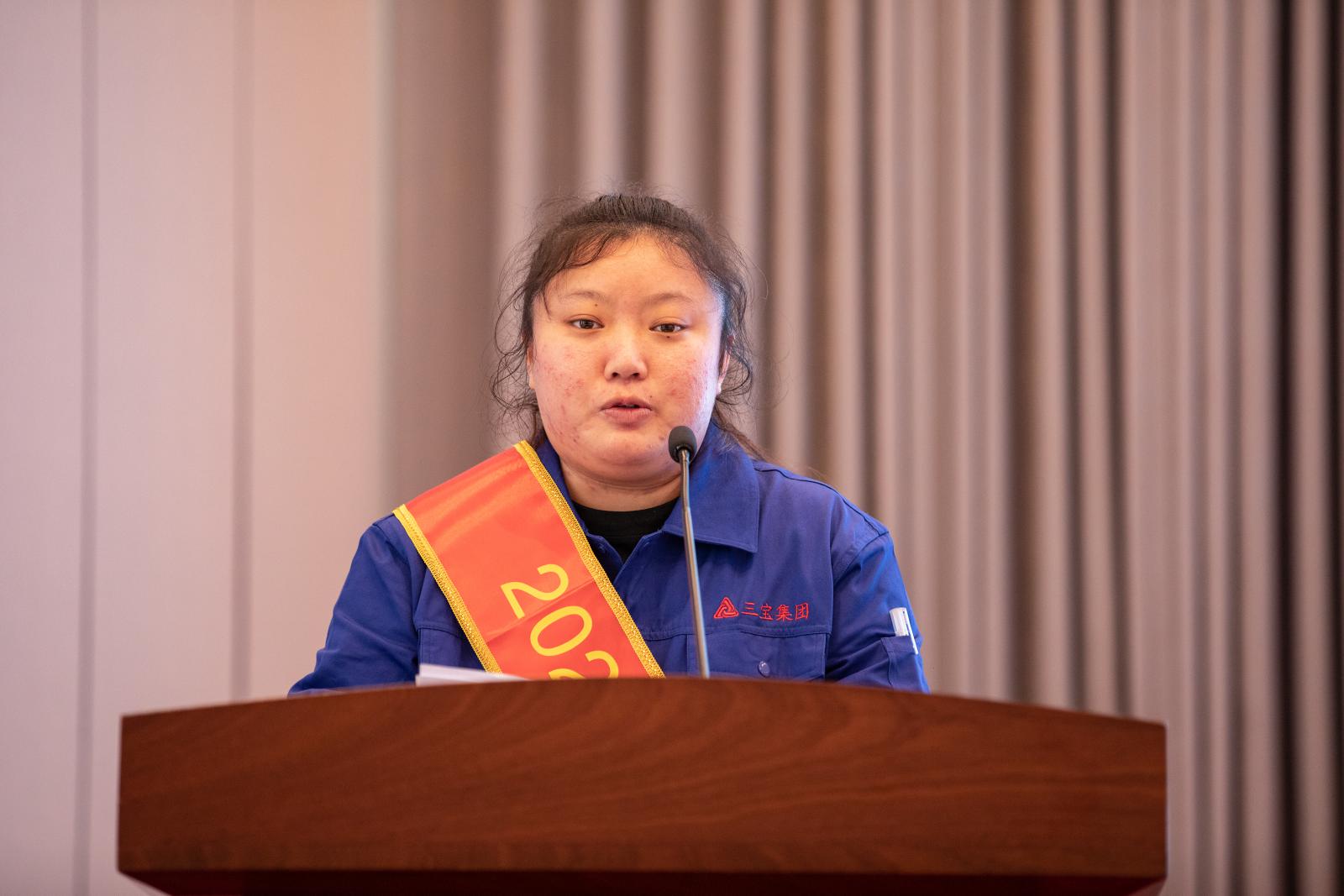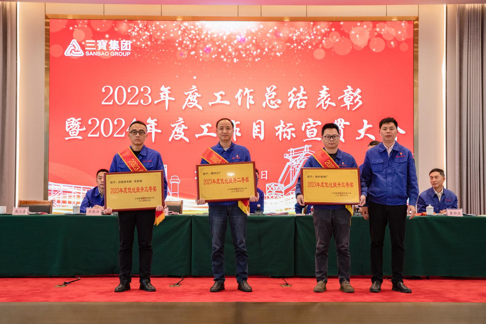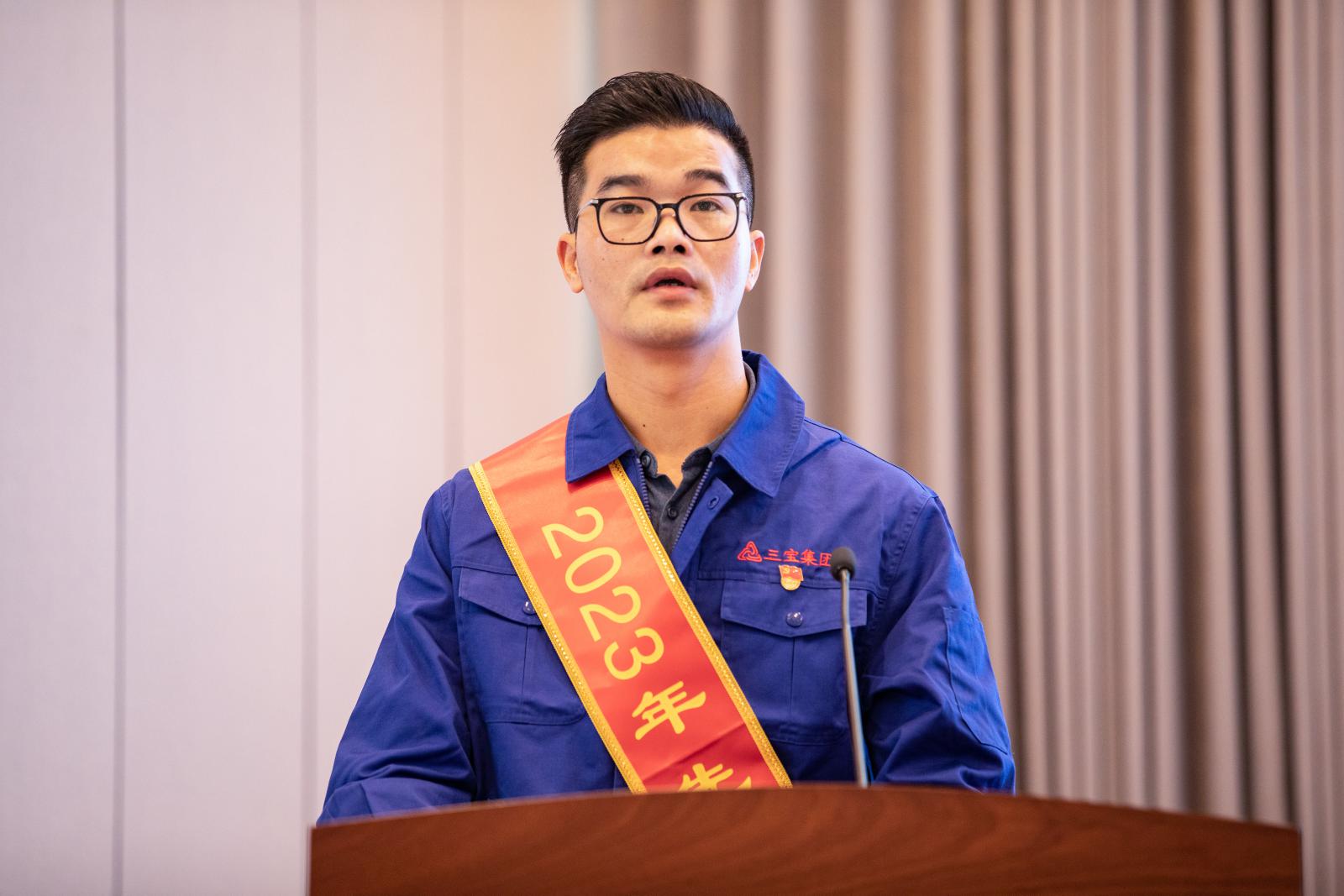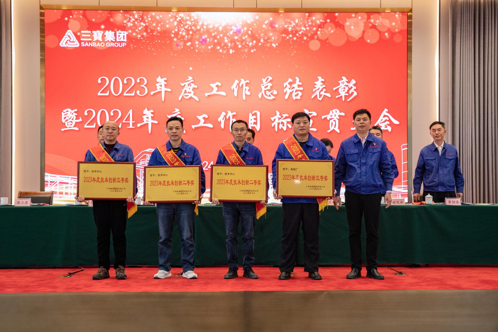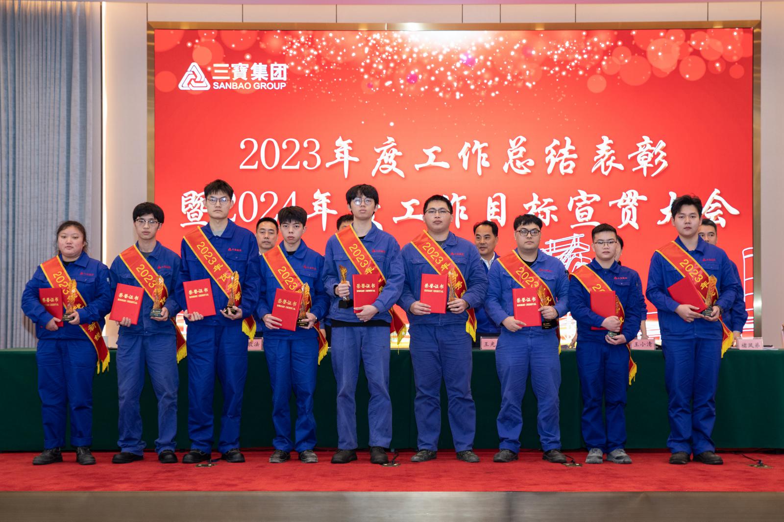 副總經(jīng)理褚鳳弟代表集團宣讀《三寶集團關(guān)于表彰2023年度先進單位及個人的決定》,本年度共產(chǎn)生總經(jīng)理特別獎9名,基層勞模49名,先進班組27個,優(yōu)秀師傅7名,優(yōu)秀新銳19名;優(yōu)秀項目建設(shè)獎1個,管理創(chuàng)新獎1個,技術(shù)創(chuàng)新獎4個,優(yōu)化提升獎3個。集團領(lǐng)導(dǎo)分別為優(yōu)秀單位和個人頒獎。