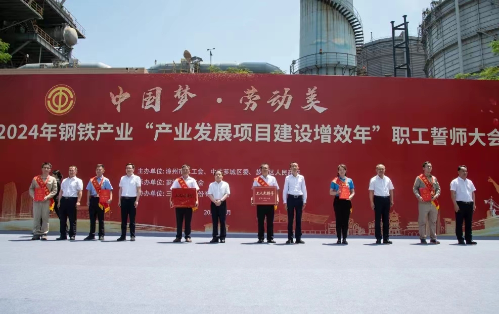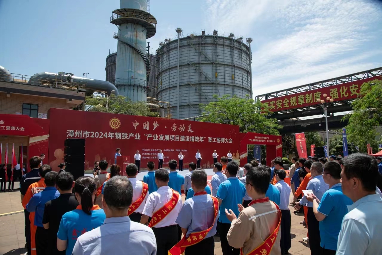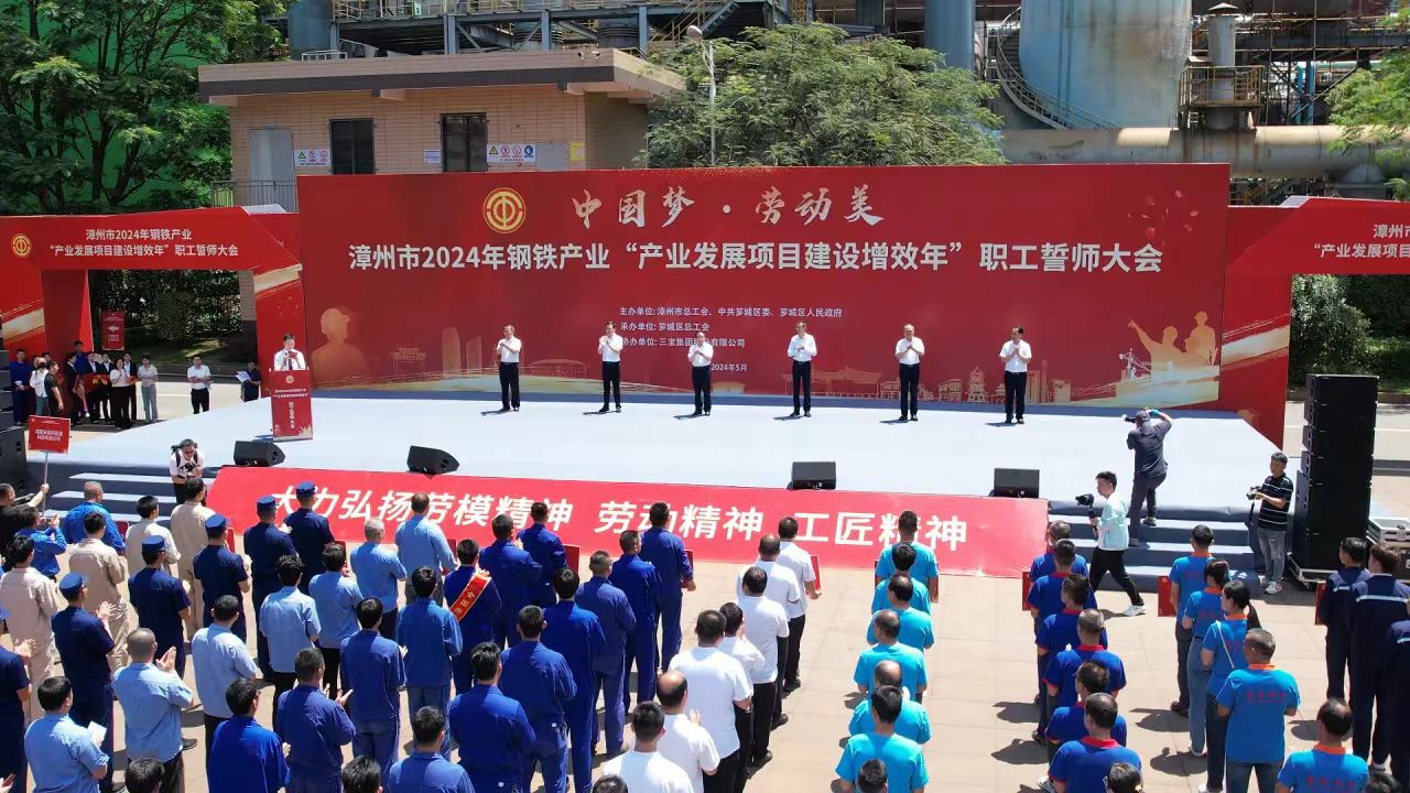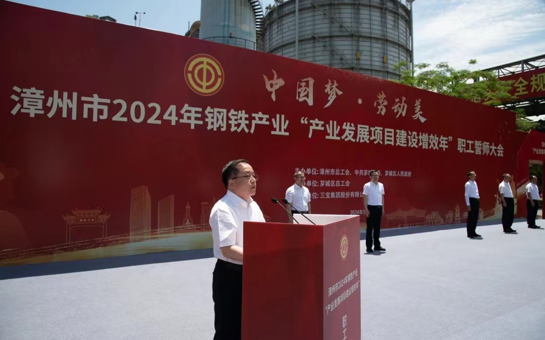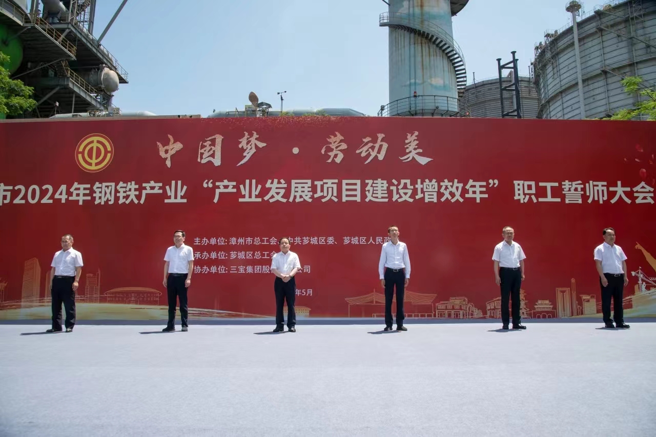 為大力弘揚勞模精神、勞動精神、工匠精神,展現(xiàn)漳州市鋼鐵產(chǎn)業(yè)職工隊伍的時代風(fēng)采和使命擔(dān)當(dāng),扎實做好“穩(wěn)運行、防風(fēng)險、提質(zhì)量、優(yōu)結(jié)構(gòu)、促轉(zhuǎn)型、增效益”工作,推進我市鋼鐵工業(yè)高質(zhì)量發(fā)展,5月29日,由漳州市總工會、中共薌城區(qū)委、薌城區(qū)人民政府聯(lián)合主辦,薌城區(qū)總工會承辦,三寶集團股份有限公司協(xié)辦的漳州市2024年鋼鐵產(chǎn)業(yè)“產(chǎn)業(yè)發(fā)展項目建設(shè)增效年”職工誓師大會,在薌城區(qū)浦南鎮(zhèn)三寶集團股份有限公司廣場舉行。市人大常委會主任李東河,市委常委、秘書長、市總工會主席張鴻,市政府副市長林少金出席活動。
