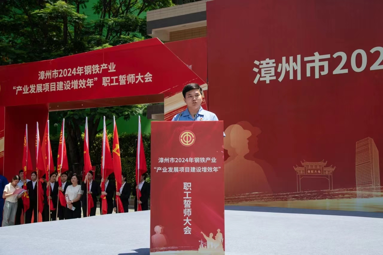 福建龍軸集團代表、市勞動模范蘇河燦作為職工代表,提出倡議,全市鋼鐵產(chǎn)業(yè)職工要提高政治站位,勇?lián)鷼v史使命,錘煉過硬本領(lǐng),立足本職崗位,投身鋼鐵產(chǎn)業(yè)發(fā)展。在市委、市政府的堅強領(lǐng)導(dǎo)下,用精神凝聚力量,用勞動托舉夢想,共同為漳州全力打造全省高質(zhì)量發(fā)展新的重要增長極。