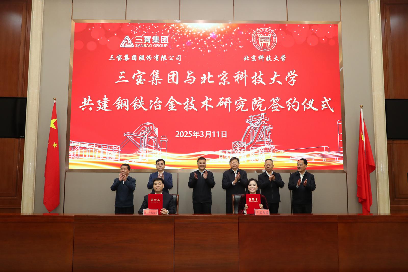 儀式上,北京科技大學(xué)校長(zhǎng)楊仁樹感謝三寶集團(tuán)長(zhǎng)期以來的信任與支持,對(duì)三寶集團(tuán)堅(jiān)持人才布局、積極促進(jìn)綠色低碳發(fā)展轉(zhuǎn)型升級(jí)的戰(zhàn)略規(guī)劃給予了高度評(píng)價(jià)。他表示,北科大與三寶集團(tuán)改革同向,發(fā)展同行,雙方在過去的合作中建立了牢固的友誼,并在科研和人才培養(yǎng)等方面展開了緊密的合作。此次共建鋼鐵研究院是對(duì)產(chǎn)學(xué)研融合的深入探索,是踐行習(xí)總書記重要囑托、推動(dòng)科技創(chuàng)新和產(chǎn)業(yè)創(chuàng)新深度融合的生動(dòng)實(shí)踐。希望雙方能依托鋼鐵研究院,聯(lián)合攻克鋼鐵行業(yè)核心關(guān)鍵技術(shù),優(yōu)化人才培養(yǎng)模式,為三寶集團(tuán)鋼鐵產(chǎn)業(yè)可持續(xù)發(fā)展注入強(qiáng)勁動(dòng)力。