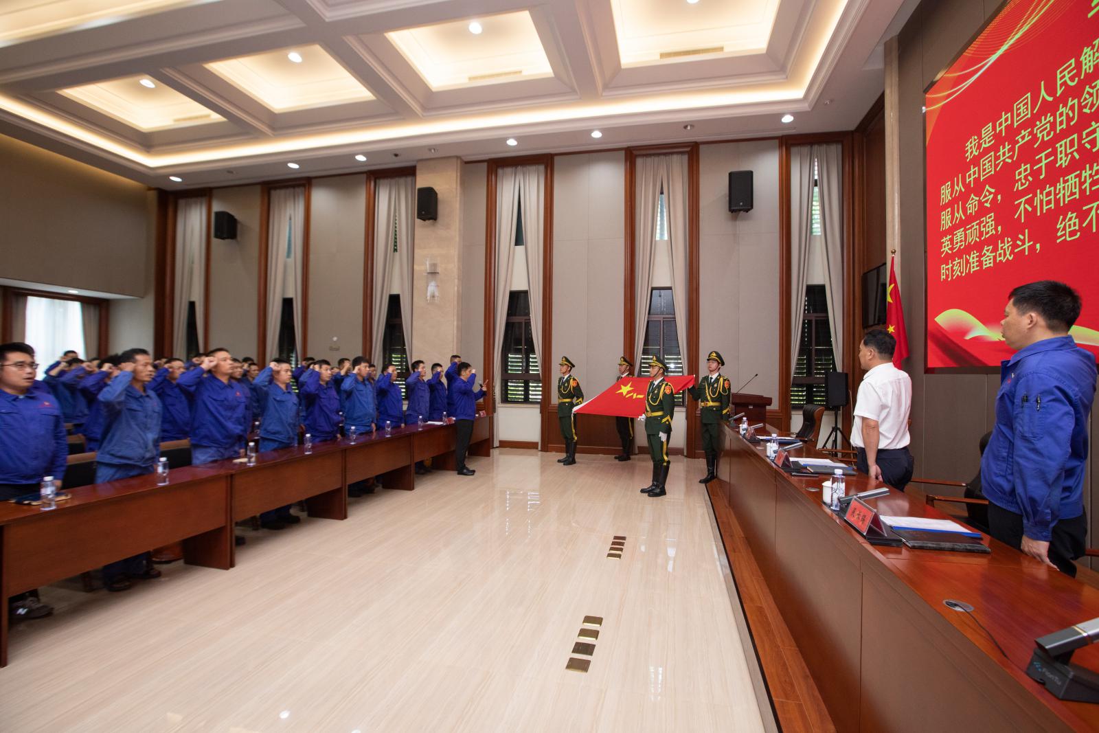 會(huì)議在莊嚴(yán)的氛圍中拉開(kāi)帷幕。全體人員起立,面向軍旗,高舉右拳,重溫軍人誓詞。鏗鏘有力的誓言響徹會(huì)場(chǎng),展現(xiàn)了退役軍人“退伍不褪色”的堅(jiān)定信念和對(duì)國(guó)家、對(duì)企業(yè)的忠誠(chéng)擔(dān)當(dāng)。