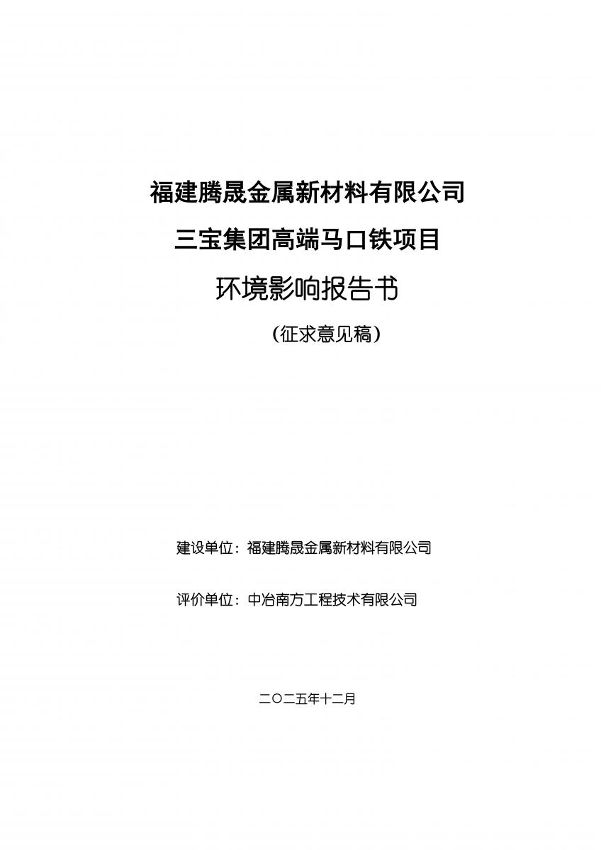 新聞中心 News 新聞中心 > 企業(yè)新聞 福建騰晟金屬新材料有限公司 三寶集團(tuán)高端馬口鐵項(xiàng)目 環(huán)境影響報(bào)告書(shū) 2025-12-30 詳情查看附件 附件1: 福建騰晟金屬新材料有限公司 三寶集團(tuán)高端馬口鐵項(xiàng)目 環(huán)境 影響報(bào)告書(shū) 附件2:征求意見(jiàn)表 返回